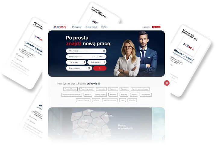Za sukcesem praca.asistwork.pl stoi zespół certyfikowanych specjalistów HR z wieloletnim doświadczeniem w rekrutacji, doradztwie personalnym i employer brandingu. W odpowiedzi na narastające potrzeby rynku uruchomiliśmy własny jobboard z ofertami pracy. Dziś pomagamy pracodawcom dotrzeć do kandydatów ze wszystkich istniejących branż.